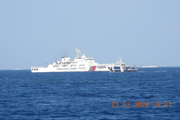 Ngày 23/3, Manila tiếp tục cáo buộc Hải Cảnh Trung Quốc lại dùng vòi rồng tấn công một tàu tiếp liệu của Philippines trên Biển Đông, gây hư hại cho tàu này (3). Hải Cảnh Trung Quốc tuyên bố đã thực hiện các biện pháp kiểm soát đối với các tàu Philippines trong vùng biển tranh chấp ở Biển Đông ngày 23/3, trong khi lực lượng tuần duyên Philippines chỉ trích các động thái này là “vô trách nhiệm và gây hấn” (4).