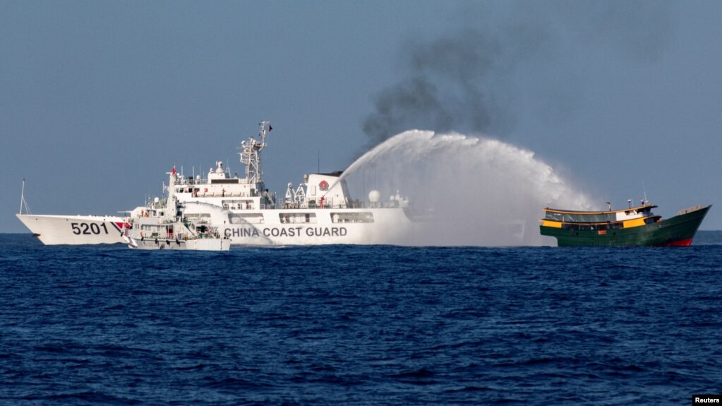 Trong thời gian qua, Manila đã tố cáo Bắc Kinh liên tục cho tàu hải cảnh quấy rối các tàu tiếp tế cho các binh sỹ của họ đồn trú trên chiến hạm BRP Sierra Madre bị mắc cạn trên Bãi Cỏ Mây mà đỉnh điểm là vụ phun vòi rồng hôm 23/3.