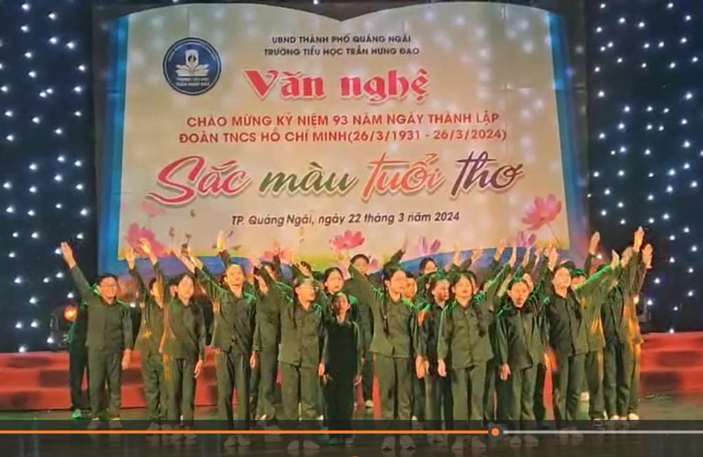 Dịp sinh nhật Đoàn ngày 26 tháng 3 vừa qua, các cháu thiếu nhi Trường Tiểu học Trần Hưng Đạo, thành phố Quảng Ngãi được tổ chức văn nghệ ca múa, chào mừng 93 năm ngày thành lập Đoàn Thanh niên Cộng sản Hồ Chí Minh.