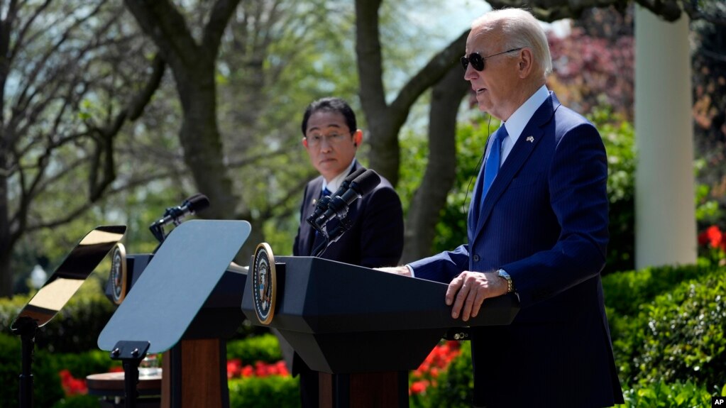 Tổng thống Hoa Kỳ Joe Biden và Thủ tướng Nhật Bản Fumio Kishida hôm 10/4 hứa hẹn một “kỷ nguyên mới” của hợp tác chiến lược Mỹ-Nhật, đề ra một loạt dự án từ hợp tác phát triển phi đạn đến hạ cánh lên mặt trăng có người lái, đồng thời lên án hành vi leo thang của Trung Quốc trong khu vực.