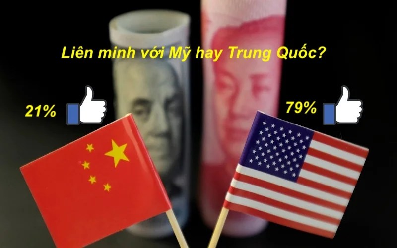 Khi được hỏi nếu buộc phải liên minh với một trong hai nước – Mỹ hay Trung Quốc – sẽ chọn nước nào, thì ở Việt Nam có tỷ lệ 21% chọn Trung Quốc so với 79% chọn Mỹ; còn trong số những người dân Philippines được hỏi chỉ có 16,7% chọn liên minh với Trung Quốc và có tới 83,3% chọn liên minh với Mỹ. Đây cũng là hai nước đứng cuối bảng về mức độ thân thiện với Trung Quốc đồng thời nghi ngại Mỹ.