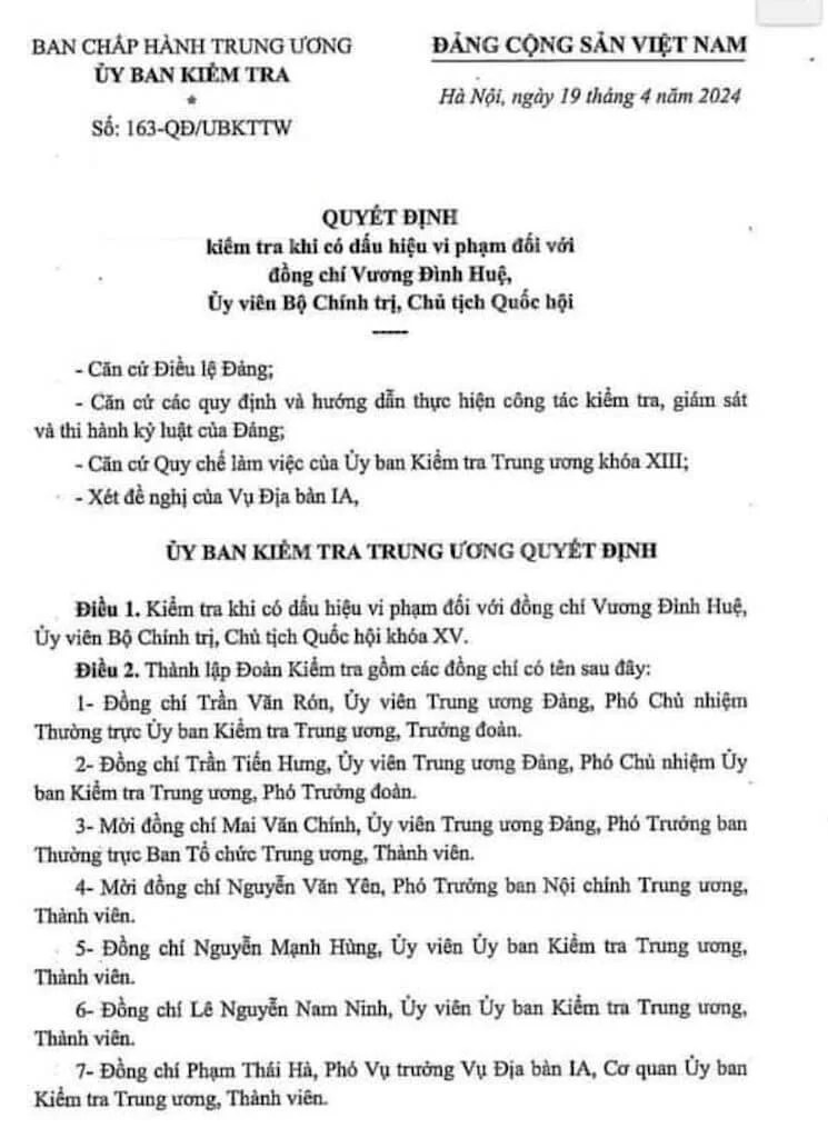 Tháng 4-2024, Bộ Công an bắt Phạm Thái Hà, Phó Chánh Văn phòng quốc hội, trợ lý Chủ tịch Quốc hội, nhằm mục đích duy nhất là gây sức ép, buộc vị Chủ tịch Quốc Vương Đình Huệ phải viết đơn từ giã chính trường. Tuy nhiên, trái với toan tính của Bộ Công an cùng phe nhóm tấn công, họ Vương không dễ bị bắt nạt và chịu thua một cách dễ dàng như các vị Minh, Đam, Phúc, Thưởng.