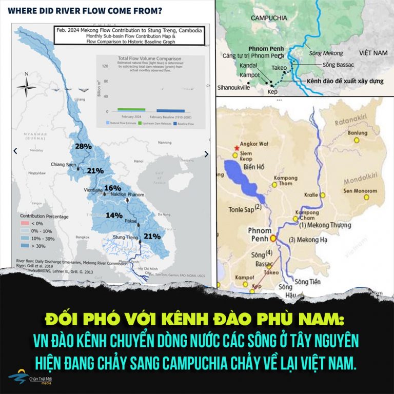Việc Campuchia đào kênh Phù Nam chuyển nước sông Mekong ra biển Campuchia là việc phá hoại dòng chảy, vi phạm các quy ước quốc tế về dòng sông chung của nhiều quốc gia, ảnh hưởng đến quốc gia hạ nguồn, vì vậy VN có quyền đáp trả. Biện pháp tốt nhất là VN đào kênh chuyển dòng các sông ở Tây nguyên như Dakrong, Se San, Serepok… hiện đang chảy sang CPC chảy về lại Việt Nam. Nên nhớ lượng nước này chiếm 20-21% nước sông Mekong.