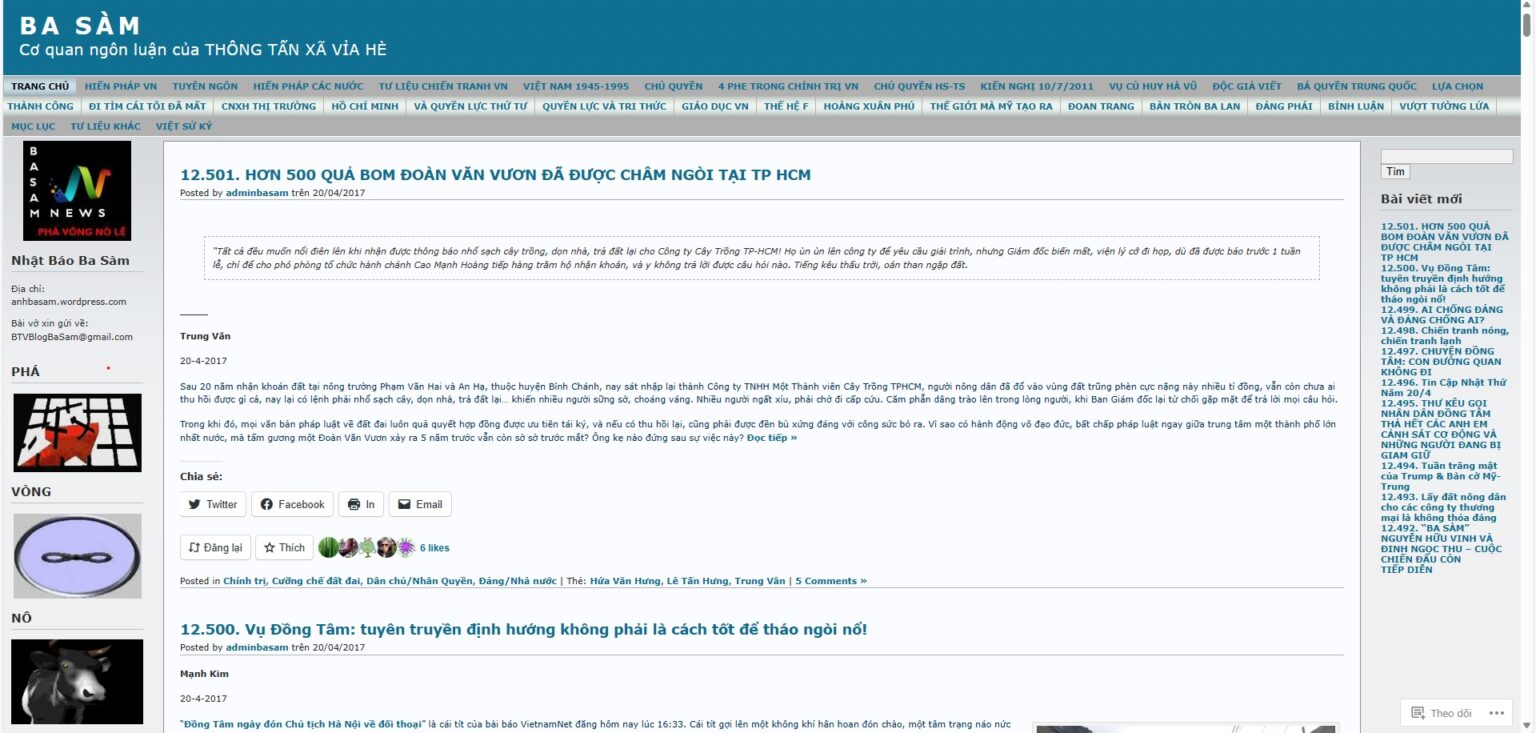 Nói “ấm ức” còn đỡ, phải nói là hệ thống tuyên truyền của Cộng Sản Việt Nam rất thù ghét “thông tấn xã vỉa hè,” cụm từ ra đời khi ông Nguyễn Hữu Vinh lập ra trang “Ba Sàm – Cơ quan ngôn luận của thông tấn xã vỉa hè” vào khoảng năm 2009 (đến giờ, trang Ba Sàm vẫn còn trên không gian mạng – anhbasam.wordpress.com).