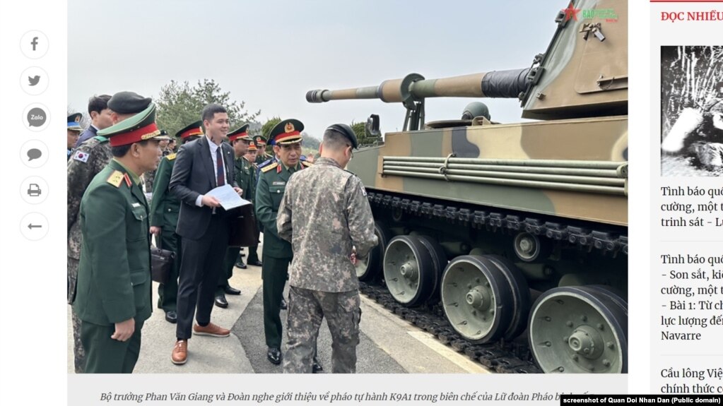 The EurAsian Times, Asian Military Review và Janes dẫn tuyên bố của Bộ Quốc phòng Hàn Quốc cho hay Thứ trưởng Quốc phòng Việt Nam Hoàng Xuân Chiến “bày tỏ ý định mua pháo K9” tại Đối thoại Chính sách Quốc phòng Việt Nam-Hàn Quốc lần thứ 11 ở Hà Nội hôm 23/4. Pháo sẽ được Quân đội Nhân dân Việt Nam sử dụng.