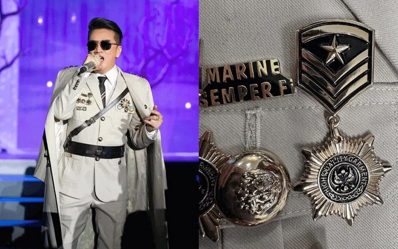 Một huy hiệu khác trên trang phục này có dòng chữ “Marine Semper fi”, được cho là từ “Marine Corps Semper Fidelis” – dịch ra là “Thủy quân lục chiến Mỹ luôn luôn trung thành”.