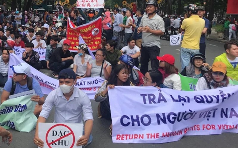 Do không có luật biểu tình, nên khi người dân xuống đường lên tiếng cho quyền lợi của mình thì có thể bị chụp mũ vì nhiều tội danh liên quan tới chống phá Nhà nước, hoặc gây rối trật tự công cộng. Điều 7 Nghị định 38/2005/NĐ-CP: quy định “Việc tập trung đông người ở nơi công cộng phải đăng ký trước với Ủy ban Nhân dân có thẩm quyền nơi diễn ra các hoạt động đó và phải thực hiện đúng nội dung đã đăng ký. Quy định này không áp dụng đối với các hoạt động do các cơ quan Đảng, Nhà nước, Mặt trận Tổ quốc Việt Nam và các tổ chức chính trị – xã hội tổ chức”.