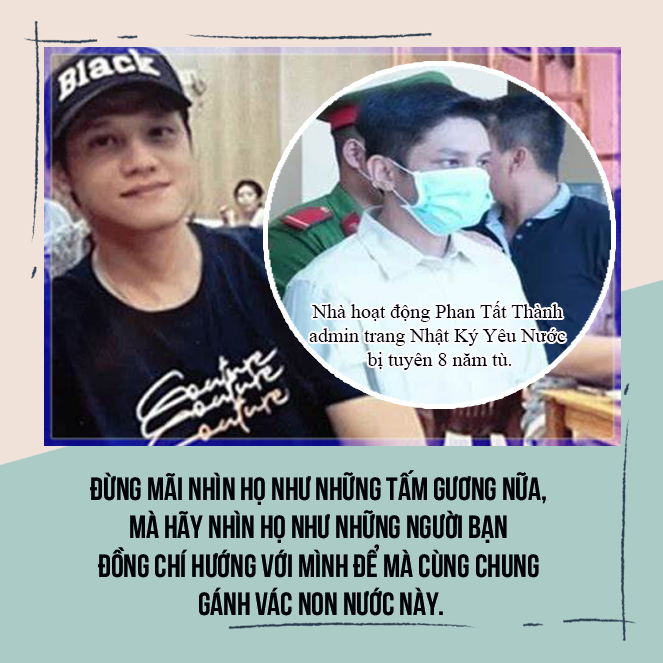 Tương lai dân tộc này, chẳng phải đang viết bằng tuổi thanh xuân tù đày, máu, nước mắt và cả sinh mệnh của họ. Đừng mãi nhìn họ như những tấm gương nữa, để phí hoài tuổi thanh xuân và sự hy sinh của họ, mà hãy nhìn họ như những người bạn đồng chí hướng với mình để mà cùng chung gánh vác non nước này, vốn có phải của riêng ai?