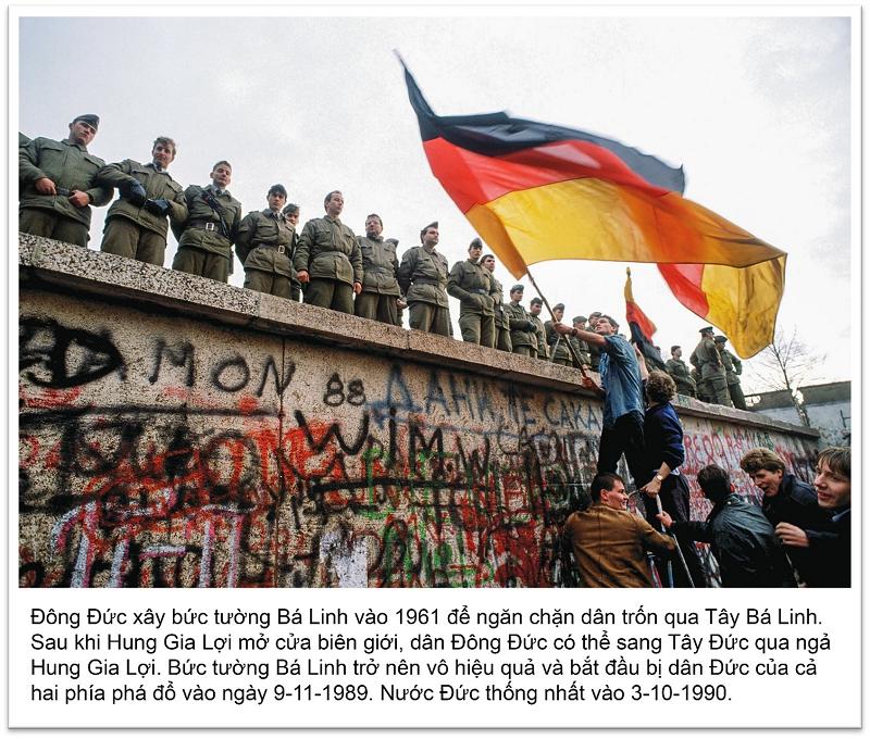 Vào ngày 9-11-1989 khi cả thế giới theo dõi trên truyền hình Đông Đức, chính phủ tuyên bố mở cửa toàn bộ biên giới Đông Đức. Trong tình thế thay đổi nhanh chóng, Bức Tường Berlin, một biểu tượng cho sự đàn áp tàn bạo của Liên Xô, đã sụp đổ . Vào cuối tháng 11, 1989, Thủ tướng Tây Đức Helmut Kohl đã công bố kế hoạch thống nhất hai nước Đức.