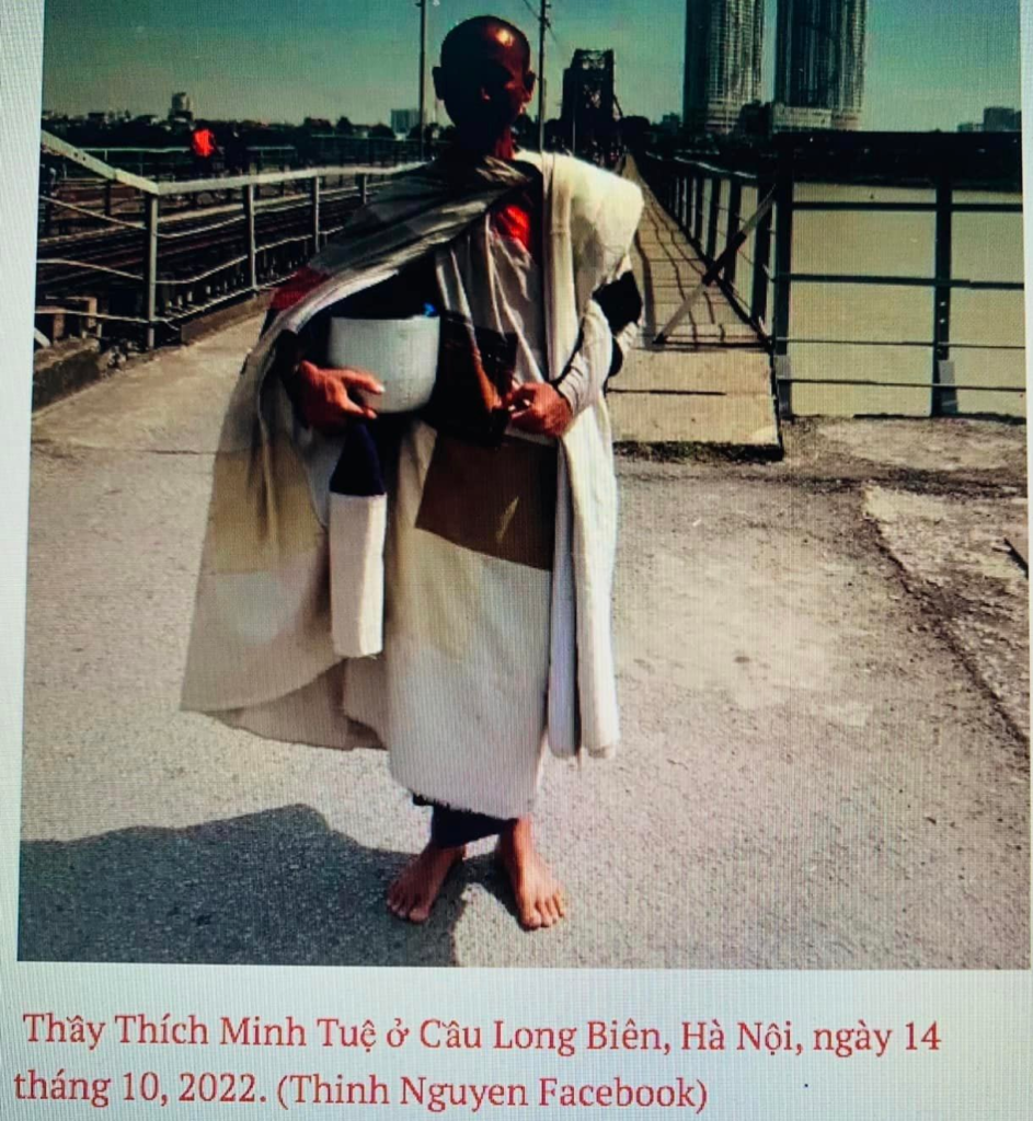Ngày 14 tháng 10 năm 2022, bạn trẻ Thịnh Nguyễn sống tại Hà Nội, tình cờ gặp Minh Tuệ đi bộ tại cầu Long Biên; bạn là người có hiểu Phật pháp nên trò chuyện, rất cảm phục và viết một stt trên Facebook “Gặp Thầy Minh Tuệ”: “Gặp một thầy chùa đi bộ từ Nha Trang lên phía Bắc, ra đến Hà Nội thầy đi hết một tháng rưỡi. Hôm nay gặp khi thầy từ Lạng sơn về tới Cầu Long Biên, trên đường thầy tới Quốc Lộ 1 để đi về Nha Trang lại.”… Chỉ có 26 comments, đều tỏ ra cảm phục… Cộng đồng mạng vẫn im lặng.