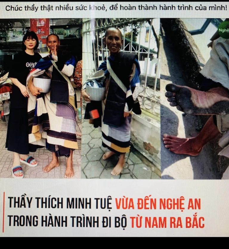 Chiều ngày 21/3/2024, Minh Tuệ đi qua Nghệ An, đi có một mình và chỉ có một cô gái hỏi chuyện và chụp hình với ông, đăng lên Facebook “Nghệ An”. Rồi ông đi mãi lên Hà Giang, chỉ một người cùng đồng hành và gặp một thanh niên hỏi chuyện, ghi lại đoạn clip, nhưng không mấy người quan tâm. Xem hình: