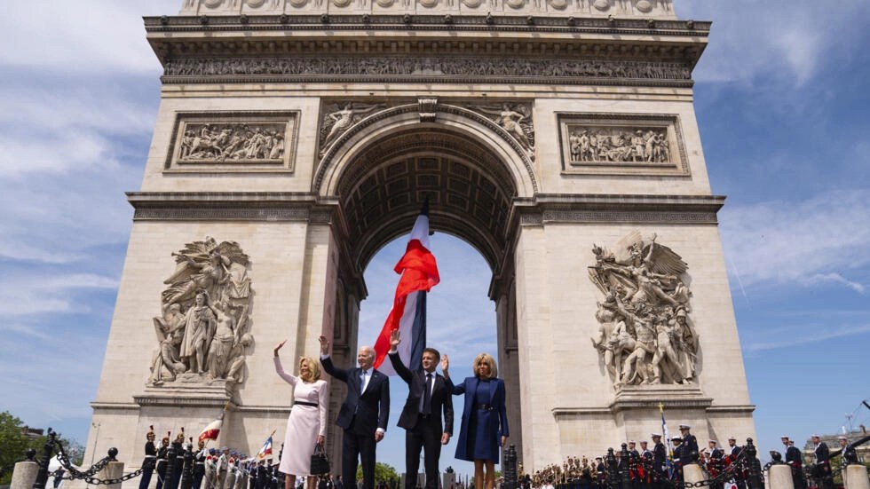 Đại lộ Champs-Elysées và Khải Hoàn Môn tại Paris được trang hoàng cờ Pháp – Mỹ để chào đón tổng thống Joe Biden bắt đầu chuyến thăm cấp Nhà nước ngày 08/06/2024, nhằm đánh dấu mối quan hệ tốt đẹp trở lại sau một vài trục trặc. Chuyến công du của nguyên thủ Mỹ diễn ra vào lúc cử tri Liên Âu bầu Nghị Viện và ông Joe Biden đang vận động tái tranh cử tổng thống Hoa Kỳ.
