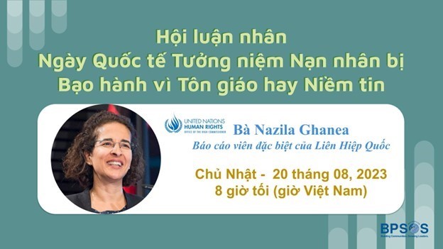Đây là kết quả của loạt hội luận do BPSOS tổ chức, với sự tham gia của Bà Nazila Ghanea, nhân Ngày Quốc Tế Tưởng Niệm Các Nạn Nhân của Các Hành Vi Bạo Lực trên Cơ Sở Tôn Giáo hay Niềm Tin, ngày 22 tháng 8, 2023.