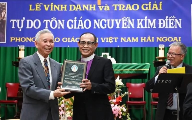 Phong Trào Giáo Dân Hải Ngoại (PTGDVNHN) trao Giải Tự Do Tôn Giáo Nguyễn Kim Điền 2024 cho Hội Đồng Liên Tôn Việt Nam (HĐLTVN) vào tháng 6.