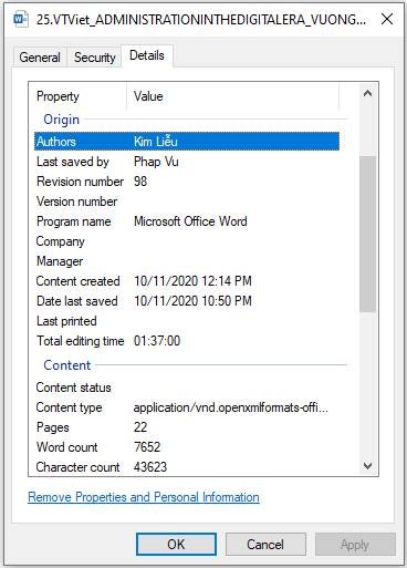 Tác giả file báo cáo này cũng không phải ông Vương Tấn Việt. Tác giả file này là Kim Liễu, nhiều khả năng là TS Trần Kim Liễu, một trong hai người hướng dẫn khoa học của ông Vương Tấn Việt.