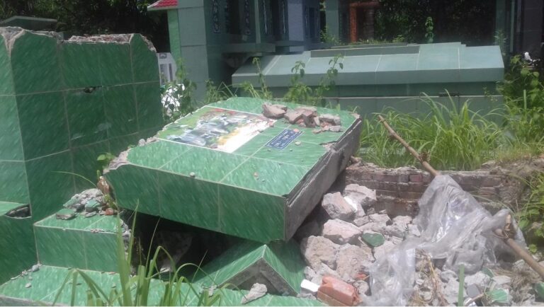 Bia mộ của tín đồ Cao Đài 1926 bị đập phá (ảnh chụp tháng 4/2018).