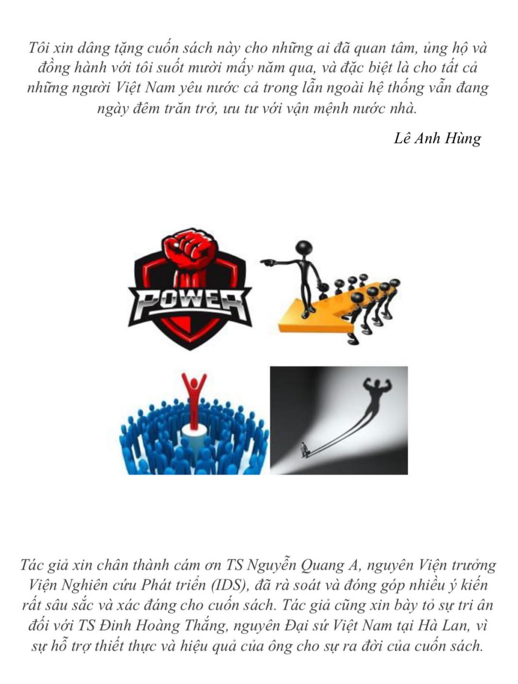 Tôi chân thành giới thiệu cuốn sách Quyền lực và vấn đề kiểm soát Quyền lực trong Xã hội của Lê Anh Hùng với các bạn đọc Việt Nam, nhất là các bạn trẻ và đặc biệt với 5 triệu đảng viên của Đảng Cộng Sản Việt Nam cùng các nhà lý luận và các cán bộ cao cấp của nó.