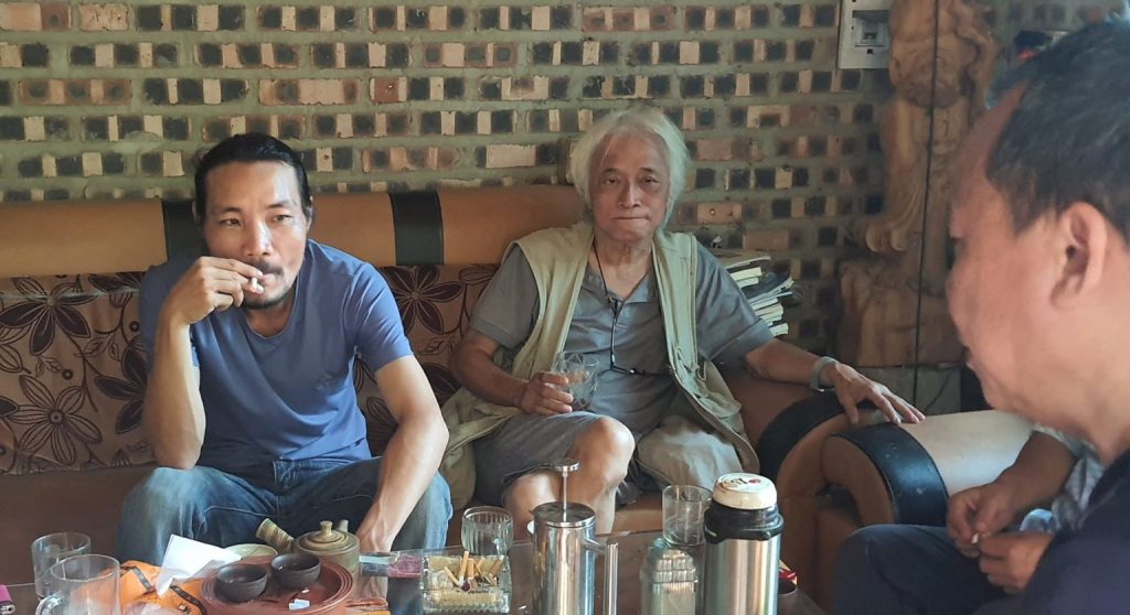 “Đại ca” tóc trắng trong hình là thầy tui, thầy Hoàng Dũng. Hơn 10 năm trước, tụi tui học ở Huế, thầy ra dạy hai chuyên đề liên quan đến Âm vị học, chắc mười mấy ngày, xong đứa nào cũng xanh lè, vì khủng hoảng! Mấy đứa con gái bảo nhau, nếu muốn giảm cân thì tìm thầy Dũng mà học!
