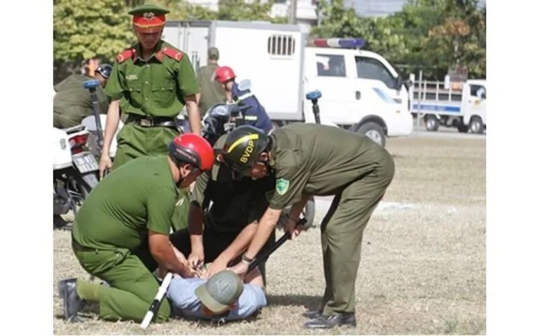 Trong lúc sôi nổi, phấn khởi ra mắt Lực lượng tham gia bảo vệ an ninh trật tự ở cơ sở, báo Công an đưa tin tràn ngập những hình ảnh công an diễn tập bắt bớ còng tay dân khắp các địa phương. [2]