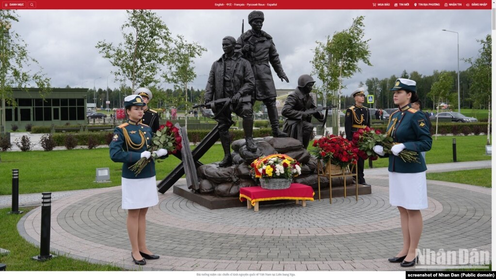Hôm 12/8, các quan chức hàng đầu của hai bộ quốc phòng Nga và Việt Nam khánh thành một tượng đài được xây ở thủ đô Nga để tưởng niệm các binh sĩ Việt Nam đã tham gia cuộc chiến bảo vệ Moscow thời Chiến tranh Thế giới thứ hai.