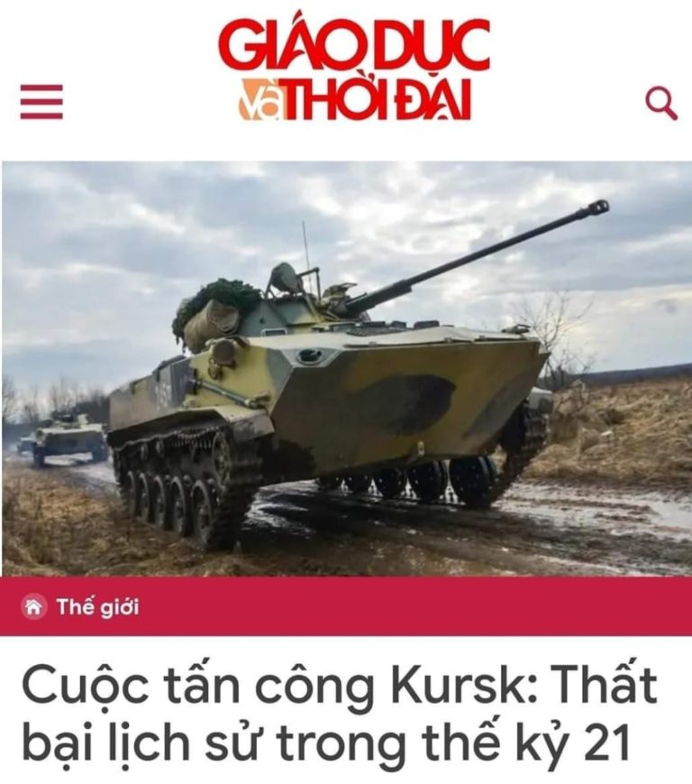 Ghi chú của Tiếng Dân: Về bài “Cuộc tấn công Kursk: Thất bại lịch sử trong thế kỷ 21“, đăng trên báo Giáo Dục và Thời đại, báo này dẫn nguồn từ hãng tin Mỹ Bloomberg, viết rằng “Bloomberg gọi cuộc tấn công của Lực lượng Vũ trang Ukraine vào vùng Kursk của Nga là ‘hoạt động quân sự thất bại nhất trong thế kỷ 21‘.” Tuy nhiên, chúng tôi tìm trên Bloomberg không thấy bài báo nào nói như thế: https://www.bloomberg.com/europe-politics