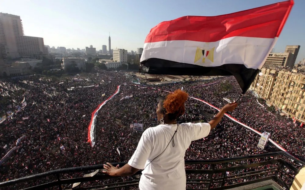 Quần chúng tập trung tại Quảng trường Tahrir, Ai Cập biểu tình chống chế độ Hosni Mubarak. Tổng thống đã có bài phát biểu trên truyền hình vào ngày 10/2/2011 và từ chức vào ngày hôm sau, kết thúc ba thập kỷ cai trị. Nguồn: Amr Abdallah Dalsh/ Reuters.