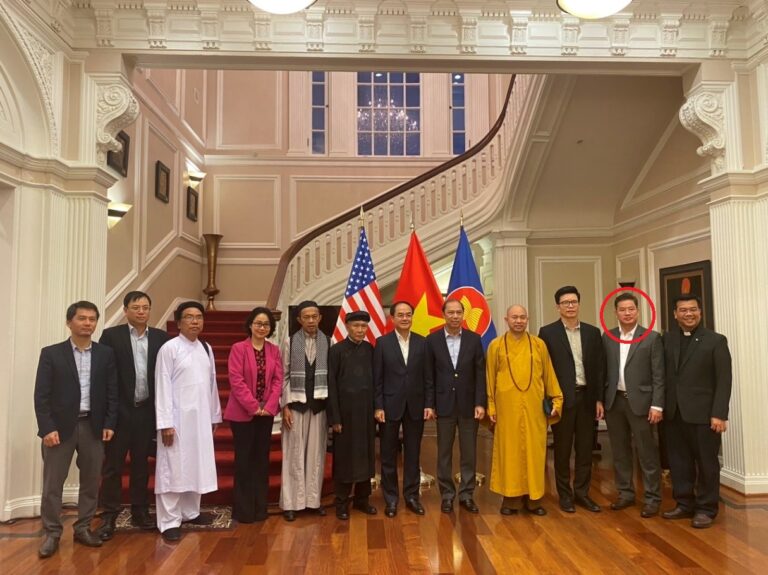 Hình phái đoàn của ông Vũ Chiến Thắng và đại diện các tôn giáo trong chuyến đi sang Hoa Kỳ tháng 10/2023, khoanh tròn là Mục sư Y Tuân Mlô (nguồn: btgcp.gov.vn).