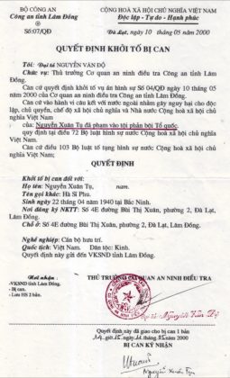 Phải nêu những dẫn chứng rất thừa như thế để nói điều rất ngạc nhiên là HSP cũng làm điều vạch thói xấu của Đảng và Dân một cách rất tế nhị, thì lại bị quy tội “Phản bội tổ quốc”, tội nặng nhất trong Luật Hình sự, với lệnh khởi tố, giam tại nhà 8 tháng và hỏi cung 400 buổi trước khi ra Tòa (xem hình chụp).