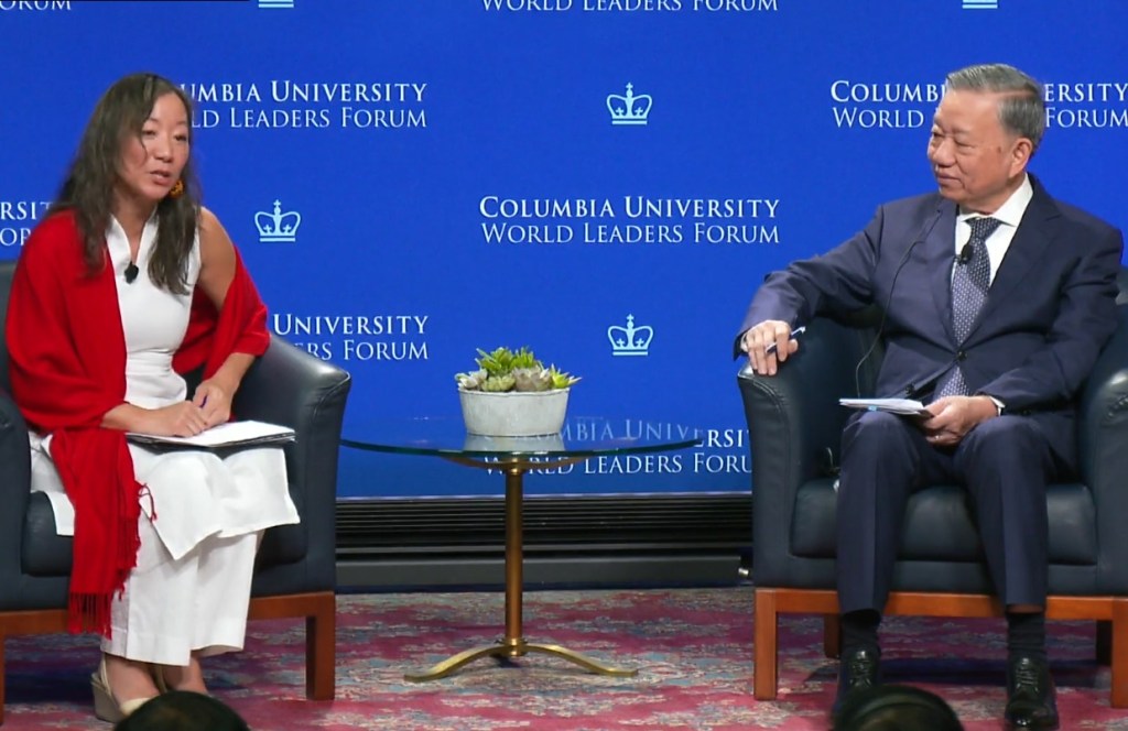 NEW YORK, New York (NV) – Ông Tô Lâm, tổng bí thư kiêm chủ tịch nước Việt Nam, “né” trả lời câu hỏi của một giáo sư người Mỹ gốc Việt liên quan đến hòa giải dân tộc qua câu nói nổi tiếng của cố Thủ Tướng Võ Văn Kiệt, trong cuộc tọa đàm tại đại học Columbia University, New York, hôm Thứ Hai, 23 Tháng Chín, trong chuyến công tác đến Hoa Kỳ để dự họp Đại Hội Đồng Liên Hiệp Quốc.