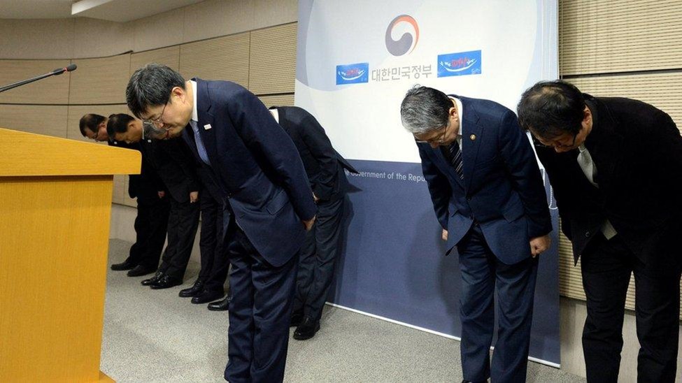 Hình dưới đây chụp ngày 21.1. 2017, cho thấy quan chức Bộ Văn hóa, Thể thao và Du lịch đang xin lỗi văn nghệ sĩ – tất nhiên là Bộ Văn hóa, Thể thao và Du lịch Hàn Quốc và văn nghệ sĩ xứ kim chi, chứ không phải là Bộ Văn hóa, Thể thao và Du lịch và văn nghệ sĩ xứ ta.