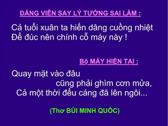 Nhớ câu thơ của Bùi Minh Quốc (cũng bị khai trừ) nói về bộ máy bây giờ: