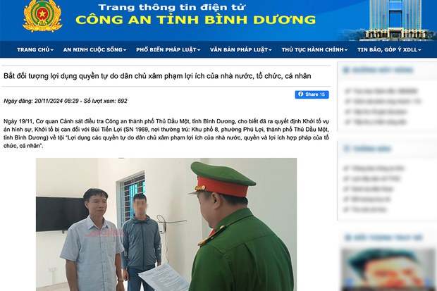 Cơ quan Cảnh sát Điều tra của Công an tỉnh Bình Dương ngày 20/11 đã bắt giữ nguyên thượng tá Bùi Tiến Lợi, cựu Chủ nhiệm bộ môn Chủ nghĩa xã hội khoa học của Trường Đại học Sĩ quan Công binh (Bộ Quốc phòng), với cáo buộc “lợi dụng quyền tự do dân chủ” theo Điều 331 của Bộ luật Hình sự.