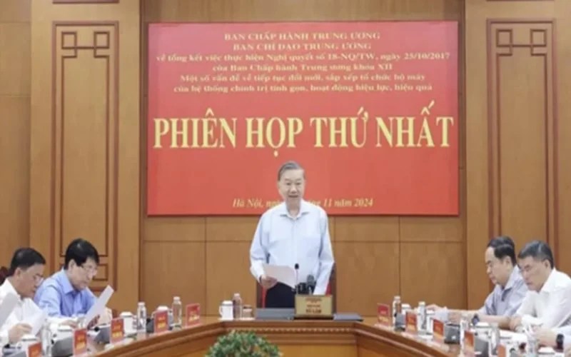 Tới sáng ngày 19/11, tại Trụ sở Trung ương Đảng, Tổng Bí thư Tô Lâm cũng đã chủ trì phiên họp thứ nhất Ban Chỉ đạo Trung ương về tổng kết việc thực hiện Nghị quyết 18 về một số vấn đề tiếp tục đổi mới, sắp xếp tổ chức bộ máy của hệ thống chính trị tinh gọn, hoạt động hiệu lực, hiệu quả.