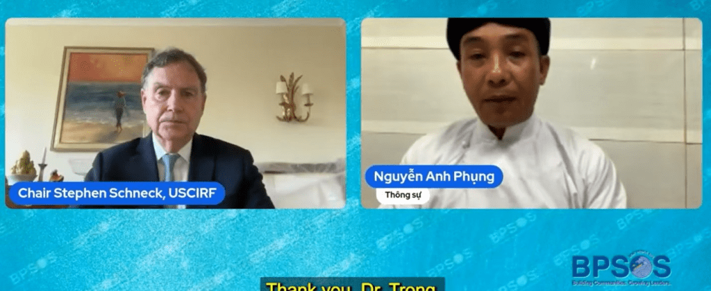 Ngày 21 tháng 11, Chủ Tịch USCIRF Schneck đã tham gia phát biểu tại cuộc họp báo trực tuyến do BPSOS tổ chức, cùng với các nhân chứng đến từ các cộng đồng Cao Đài, Tin Lành Thượng, Tin Lành Hmong, Phật Giáo Thống Nhất, Phật Giáo Hòa Hảo và Công Giáo.