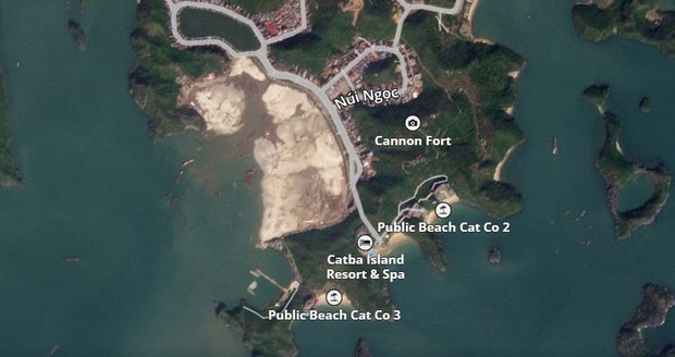 Tuy nhiên hiện tấm thảm xanh này đã không còn toàn vẹn nữa. Hình ảnh vệ tin Planet mà RFA thu thập được cho thấy vịnh Cát Bà, hay còn được gọi là vịnh trung tâm của quần đảo này đã được thay bằng nền cát trắng.