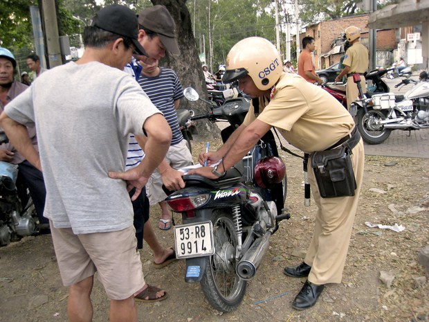CSGT đang viết giấy xử phạt người vi phạm – Reuters
