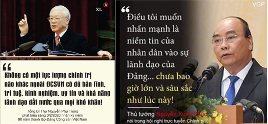 - Nguyễn Phú Trọng: “Không có một lực lượng nào khác ngoài ĐCSVN có đủ bản lĩnh, uy tín và khả năng lãnh đạo đất nước vượt qua mọi khó khăn.”