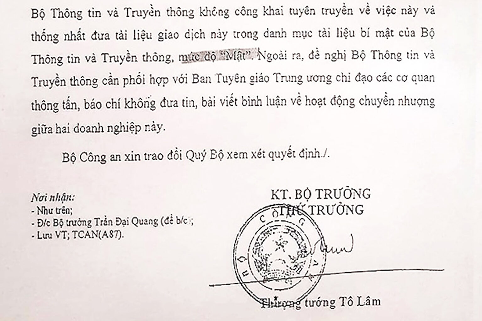 Trong vụ án nêu trên, ông Tô Lâm, tổng bí thư đảng CSVN, cựu thứ trưởng Công An, từng được ghi nhận ký đến ba văn bản đều đóng dấu “Mật,” để che giấu thương vụ AVG bán trót lọt 95% cổ phần, gây thiệt hại hàng ngàn tỷ đồng cho MobiFone.