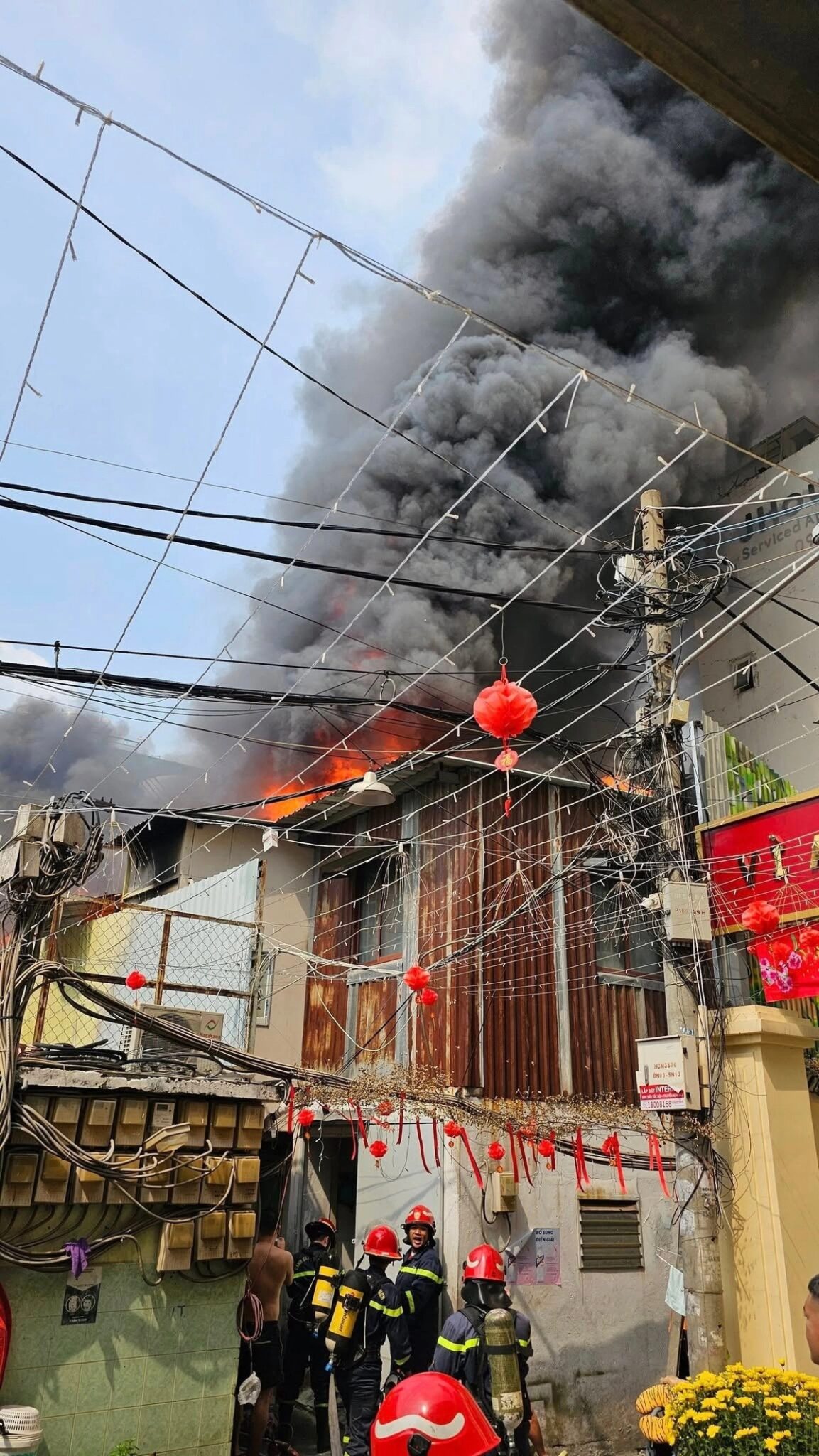 Nhiều người dân cố tiếp cận dập lửa nhưng bị sức nóng tỏa ra con hẻm cản lại, thế là nhiều người nhanh chóng di tản.
