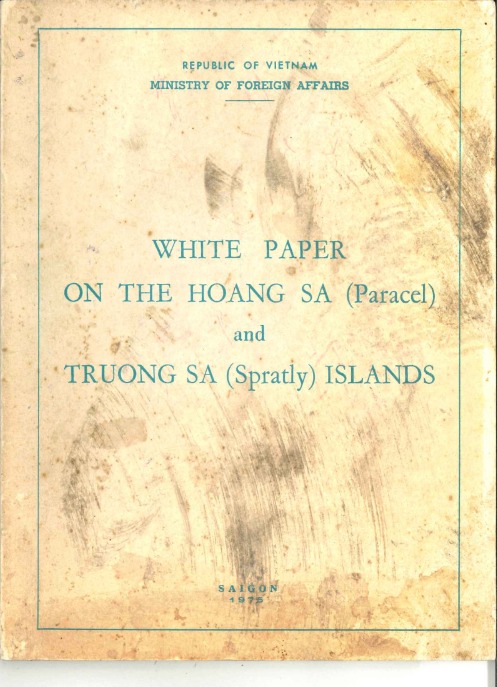 Trang mạng Đại sự ký Biển Đông (dskbd.org) vừa công bố tài liệu “White Paper on The Hoang Sa and Truong Sa Island – Ministry of Foreign Affairs – Republic Vietnam 1975” (Sách Trắng về Hoàng Sa và Trường Sa của Bộ Ngoại giao Việt Nam Cộng hòa 1975) [1].