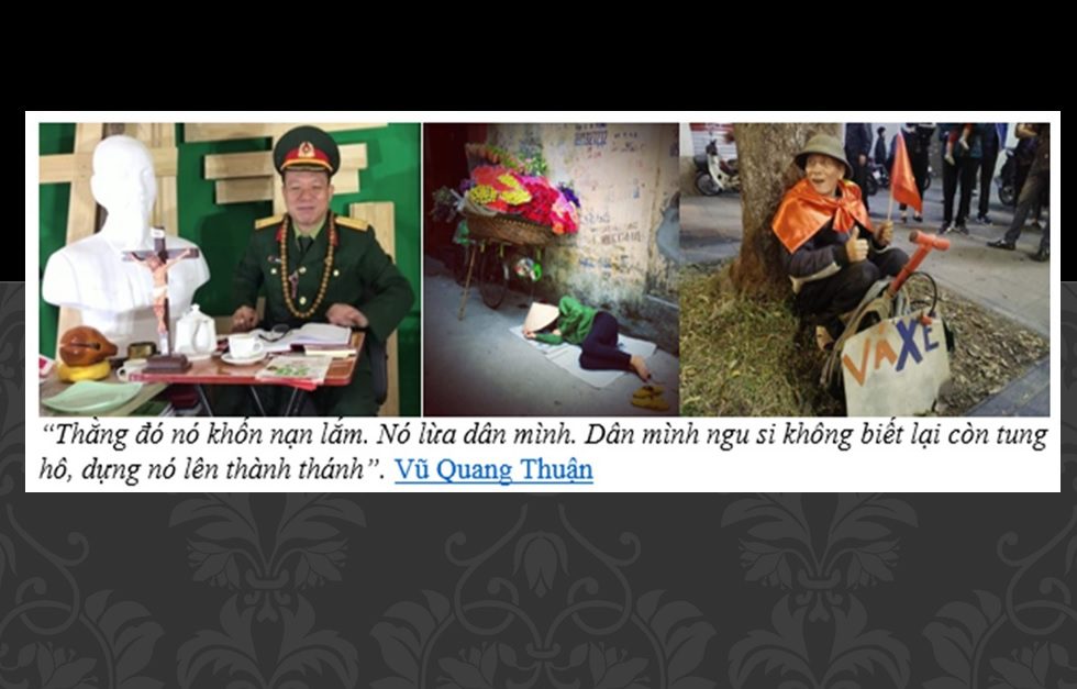 Tuy “trâng tráo” nhưng hiệu quả. Nạn nhân của cách tuyên truyền lì lợm và thô bạo này, với thời gian, có thể biến thành… thủ phạm (dễ) như chơi. Thử nghe đạo diễn Nguyễn Đình Nghi, trưởng nam của thi sĩ Thế Lữ, nói về bằng hữu của thân phụ ông (trong nhóm Tự Lực Văn Đoàn) nha: