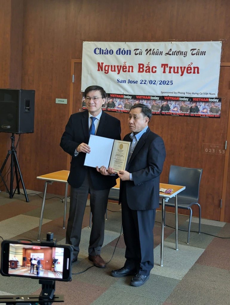 Ngày 22/2/2025, ông Nguyễn Xuân Hiệp – Cố vấn Cao cấp của Dân biểu Liên bang Ro Khanna đại diện 2 vị Dân biểu Liên bang Ro Khanna và Zoe Lofgren trao tặng cựu tù nhân lương tâm Nguyễn Bắc Truyển bằng tưởng lục (giấy khen của Quốc Hội), ghi nhận nỗ lực tranh đấu của ông Truyển cho nhân quyền và tự do tôn giáo tại Việt Nam.