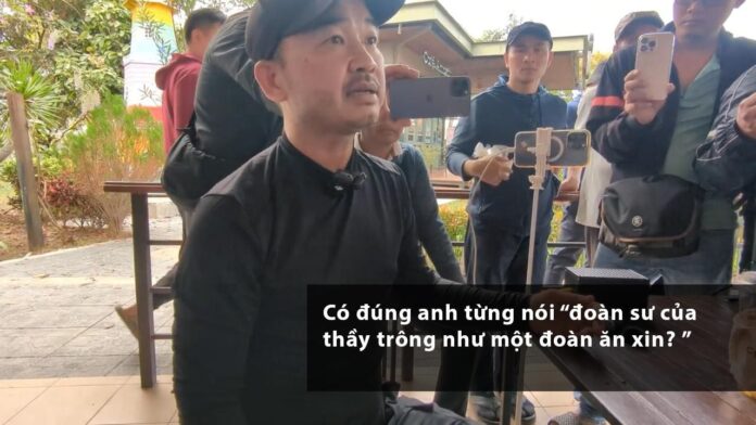 Thế rồi anh lại tình nguyện phục vụ sư Minh Tuệ “hết lòng, hết sức, vô điều kiện”, thề: “Thầy chết, con cũng chết”! Anh cạo đầu, ăn chay ngày 1 bữa, sụt đi 7-8 cân, anh ngồi thiền, anh quỳ lạy Thầy, anh xin sám hối… Anh diễn còn hơn diễn viên gạo cội đấy! Nhưng đối chiếu hai cái clip trước và sau, lòi ra, anh quá giả dối, mà không chút ngượng ngùng!