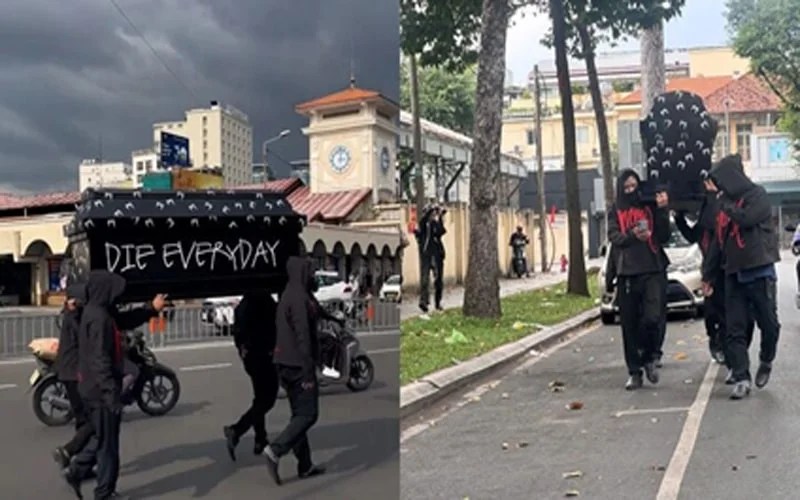 Tới ngày 1/3, nhóm này đăng đoạn video dài khoảng 30 giây lên mạng xã hội, trong đó là cảnh 4 thanh niên mặc đồ đen, trùm đầu, mang khẩu trang, khiêng quan tài có viết chữ trắng đi nhiều vòng trước khuôn viên chợ Bến Thành.