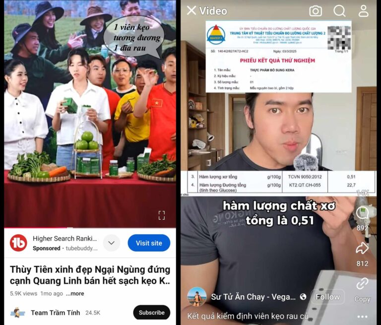 Sau câu nói “nổi tiếng” trong lịch sử nước nhà “1 ký rau muống có giá trị dinh dưỡng bằng 1 ký thịt bò”, thì Quang Linh Vlogs, Hằng Du Mục và Hoa hậu Nguyễn Thúc Thùy Tiên đã tái hiện lại lịch sử với câu nói “1 viên kẹo tương đương 1 đĩa rau” trong chương trình quảng cáo kẹo rau củ Kera!