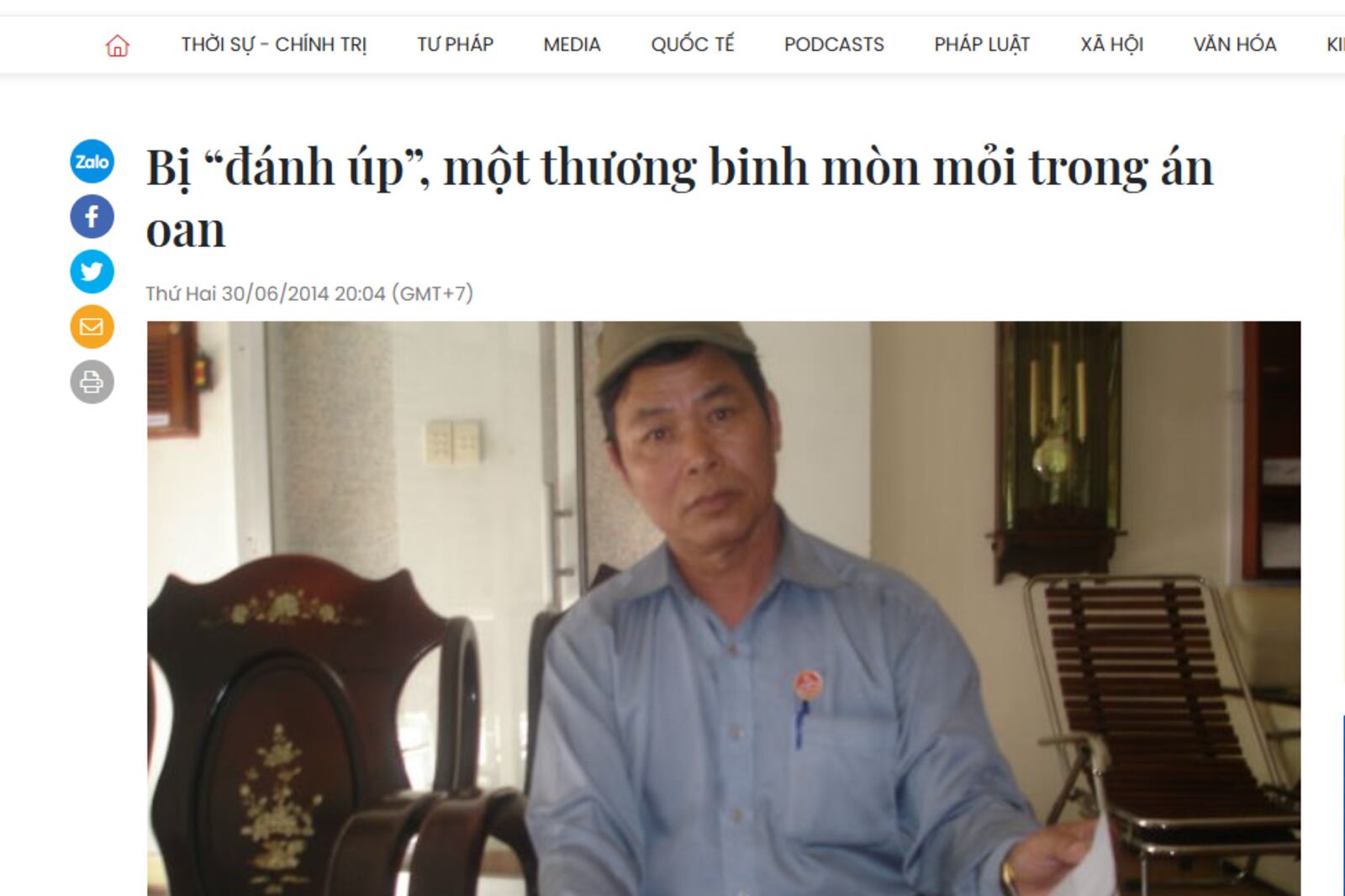 Với tiêu đề “Bị “đánh úp”, một thương binh mòn mỏi trong án oan”, bài báo cho biết ông Toan là cựu chiến binh tham gia Chiến tranh biên gới Tây Nam, và đã bị thương trong chiến đấu.