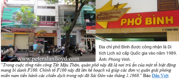 Bên phải góc đường Hai Bà Trưng – Lý Chính Thắng (TP.HCM) có một “địa chỉ đỏ” của chiến dịch Tổng tiến công và nổi dậy Xuân Mậu Thân 1968. Đó là quán phở Bình nổi tiếng của vợ chồng ông Ngô Toại (Ngô Duy Ái).