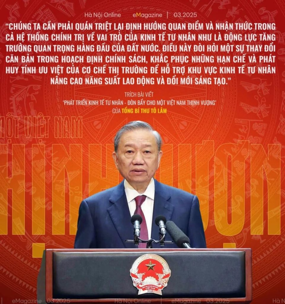 Tổng bí thư Tô Lâm không nói “kinh tế tư nhân là chủ đạo”, chỉ nói “phát triển kính tế tư nhân là đòn bẩy cho một Việt Nam thịnh vượng” là tế nhị và hàm ý. Tôi hoan nghênh nhưng cũng băn khoăn, vì từ đời Tổng bí thư Đỗ Mười đến Tổng bí thư Nguyễn Phú Trọng đều có đường lối “kinh tế thị trường theo định hướng XHCN” lấy kinh tế nhà nước làm chủ đạo. Sau khi dồn hết tài lực và vật lực cho các “quả đấm thép”, bây giờ chúng đã phá sản hết! Các tập đoàn chưa phá thì nợ ngập đầu.