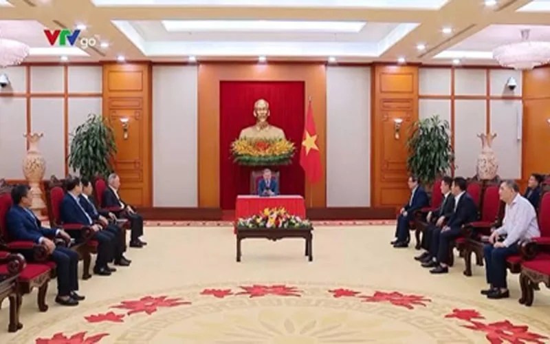 Hoặc ngày ngày 15/1/2025, Tổng Bí thư Tô Lâm cũng có điện đàm với Tổng Bí thư, Chủ tịch nước Trung Quốc Tập Cận Bình nhân dịp kỷ niệm 75 năm thiết lập quan hệ ngoại giao giữa hai nước. Buổi điện đàm cũng diễn ra tại Trụ sở Trung ương Đảng, cũng ngay tại vị trí mà tổng bí thư thường ngồi: dưới tượng Hồ Chí Minh và bên phải có cờ đỏ sao vàng cùng cờ búa liềm.
