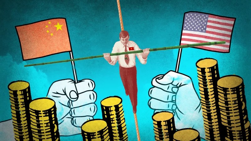 Việt Nam đang đi trên một sợi dây mỏng manh vừa tìm cách cân bằng giữa hai đối tác chiến lược toàn diện vừa có thể tránh né được cuộc chiến thuế quan đang leo thang của hai nền kinh tế lớn nhất thế giới.